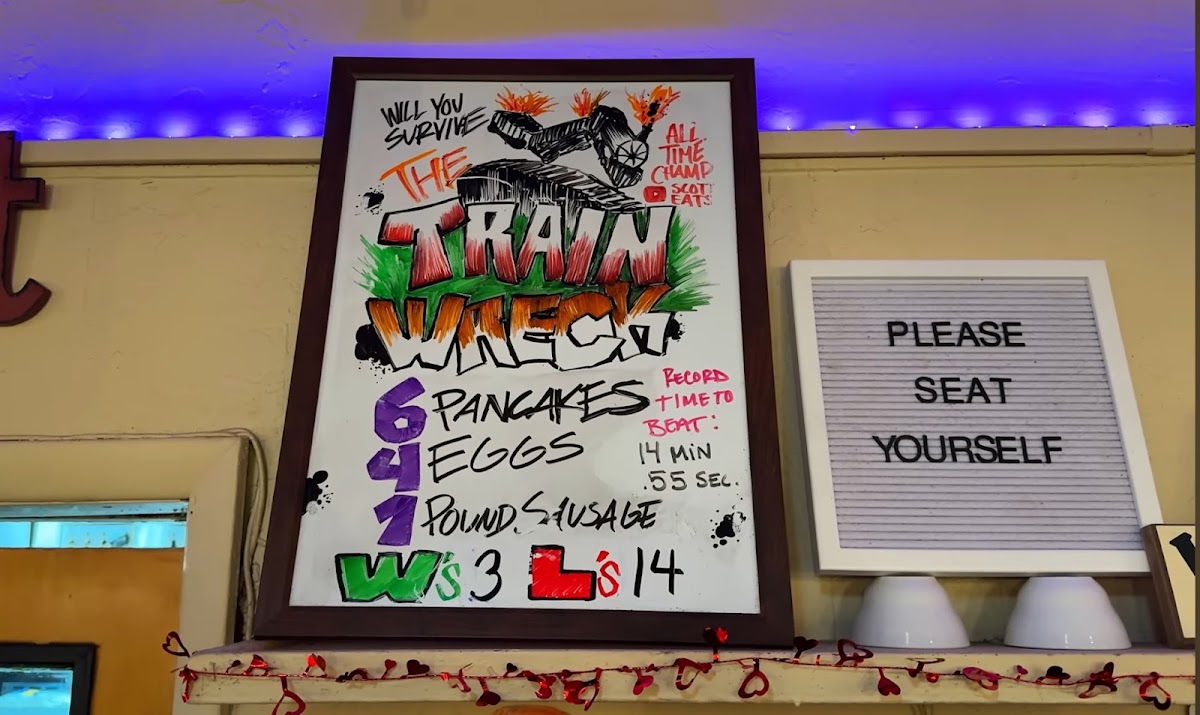 House breaded chicken breast patty served with 2 eggs, toast and choice of hashbrowns, fruit or cottage cheese